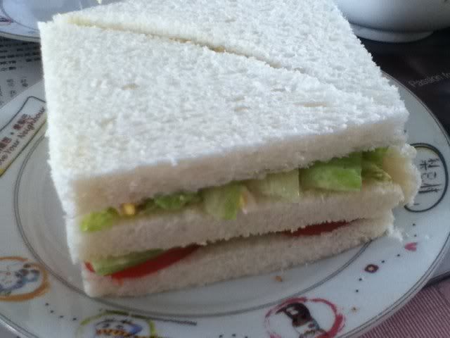 呢個三文治,除左有青瓜蕃茄同生菜,仲有碎蛋吞拿魚沙律。